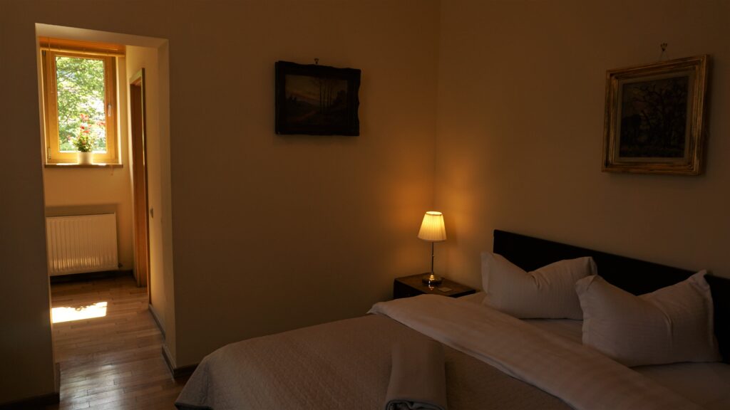 Mobila Art Deco din camera dublă specială a fost comandată și confecționată la Viena la începutul secolului trecut și este singurul dormitor rămas în posesia familiei.